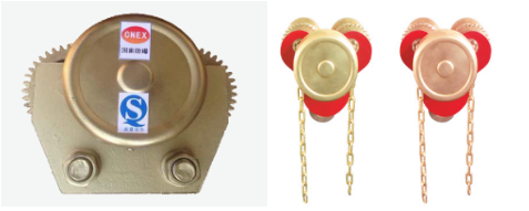 首先來看防爆手推單軌行車,它主要由齒輪、擋板以及吊環組成。使用時將齒輪間距調整成適合工字鋼的距離,然后固定在工字鋼上,吊環用于懸掛起重吊裝設備,待重物懸掛起吊穩定后用手推動起吊重物,使其行走在工字鋼上,完成起吊運輸過程。